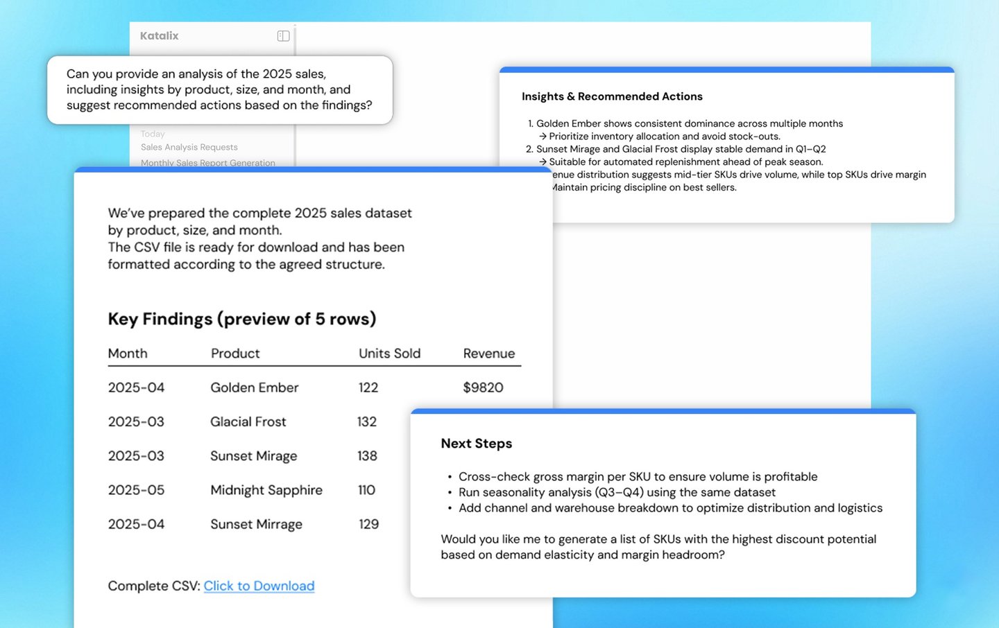 Katalix grounds every answer in your actual data and clearly explains how conclusions are reached.