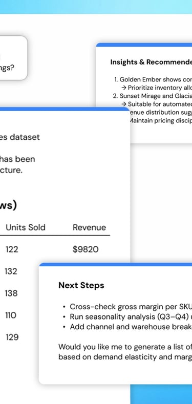 No guesses, no hallucinated numbers, just traceable reasoning from your datasets.